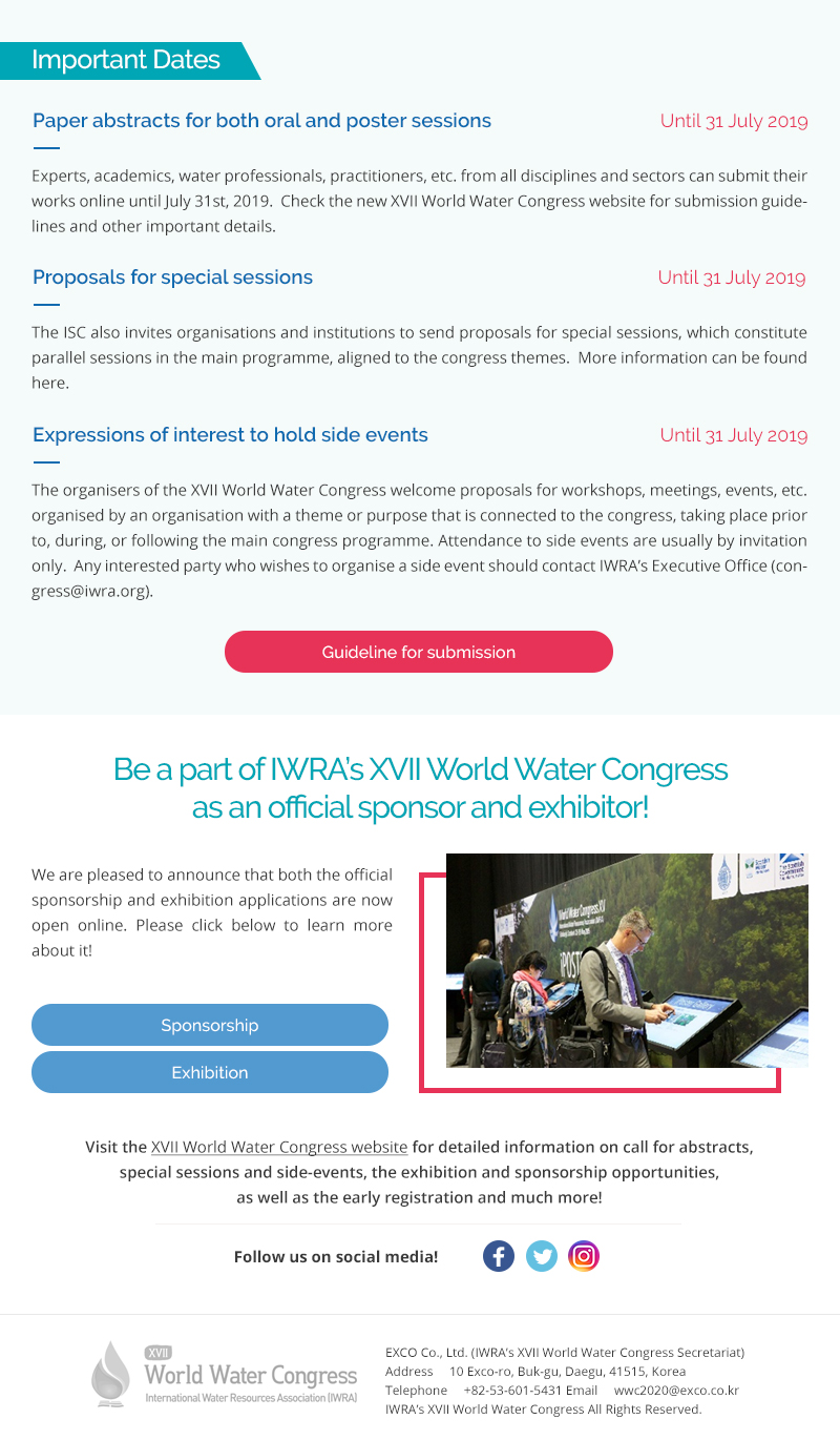 New Dates: IWRA’s XVII World Water Congress (29 November – 3 December 2021)!